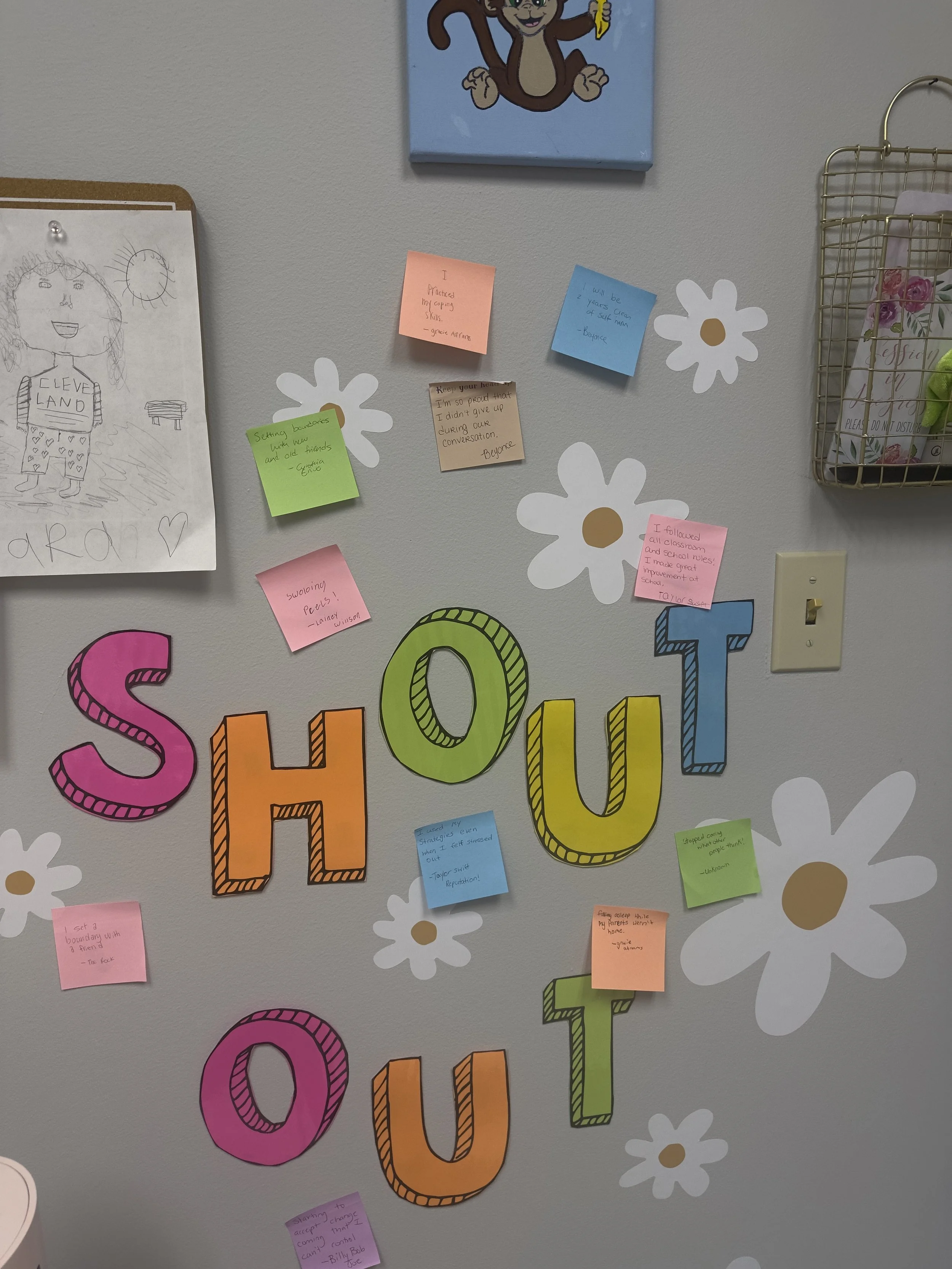 At our practice, we love celebrating treatment progress—and now we’ve got a fun and uplifting way to do just that! Introducing our Shout Out Board—a space where clients can give themselves a shout-out for the hard work they’re doing. Whether it’s taking a brave step, reaching a milestone, or simply showing up when it wasn’t easy, this board is a place to recognize and celebrate those wins.